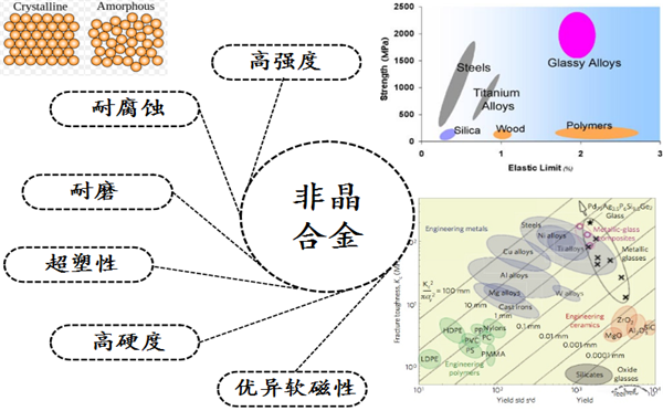我們知道,非晶合金由于其原子排列長(zhǎng)程無(wú)序、短程有序的特點(diǎn),其在物理、化學(xué)以及力學(xué)性能上都呈現(xiàn)出一系列傳統(tǒng)晶體合金所不具備的優(yōu)異特性,這使其在軌道交通、航空航天、汽車船舶、裝甲防護(hù)、精密儀器等領(lǐng)域都存在廣泛的應(yīng)用前景。然而,處于亞穩(wěn)態(tài)的非晶合金需要在較快的冷卻速率下才能獲得,而目前通常采用的銅模鑄造法只能制備出臨界尺寸較小的非晶合金。另外,由于塊體非晶合金存在嚴(yán)重的室溫脆性問(wèn)題,其在室溫下難以進(jìn)行機(jī)械加工。復(fù)雜形狀構(gòu)件的模具無(wú)法或很難加工制造,導(dǎo)致難以獲得精密復(fù)雜的非晶合金構(gòu)件,這成為制約非晶合金應(yīng)用的另一個(gè)瓶頸。因此,如何突破非晶合金臨界的尺寸限制和復(fù)雜構(gòu)件的制備加工是擴(kuò)展其在相關(guān)領(lǐng)域應(yīng)用的關(guān)鍵。