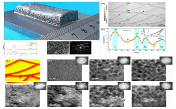 上述3所高校研究人員利用同軸送粉激光3D打印技術(shù),通過(guò)有限元模擬的方法優(yōu)化佳工藝參數(shù),成功制備出大尺寸、非晶含量較高、且具有梯度結(jié)構(gòu)的Zr基非晶合金。本研究成果不僅提供了一種制備大尺寸具有復(fù)雜形狀的非晶合金的新方法,也為促進(jìn)高性能非晶合金在工程和功能領(lǐng)域的大規(guī)模應(yīng)用奠定了基礎(chǔ)。、遼寧省教育廳重點(diǎn)實(shí)驗(yàn)室基礎(chǔ)研究項(xiàng)目的資助。)
